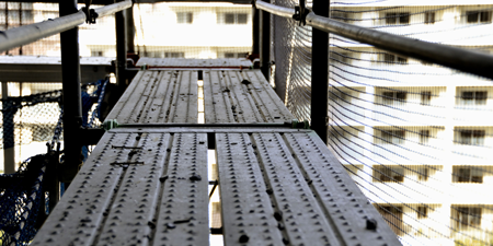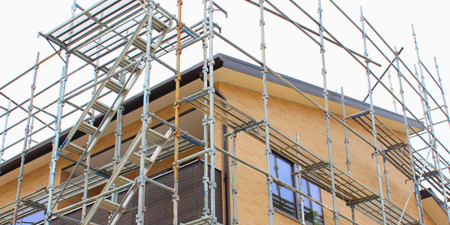 ビルや橋梁、倉庫や発電所など、様々な構造物の建設に必要となる、足場・安全設備を設置します。外壁の塗装や補修のための工事にも必要となります。当然足場の解体も含まれます。