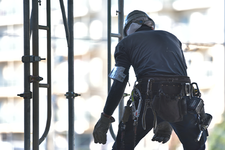 とび職の仕事は、高所での建築や施工作業を担当します。足場組み立てや安全な昇降技術、作業道具の取り扱いが求められます。足場の解体も業務に含まれます。